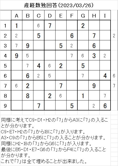 「1」の場合はG1・G2・G3・H1・H2・H3・I1・I2・I3の枠とA7・A8・A9・B7・B8・B9・C7・C8・C9の2つの枠でぶつかることが分かります。