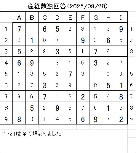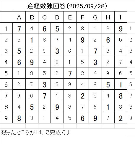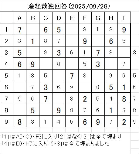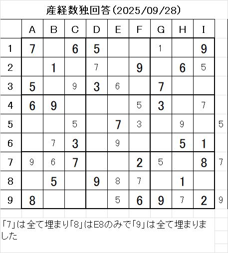 以上で、本日の数独を解くことが出来ました。