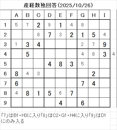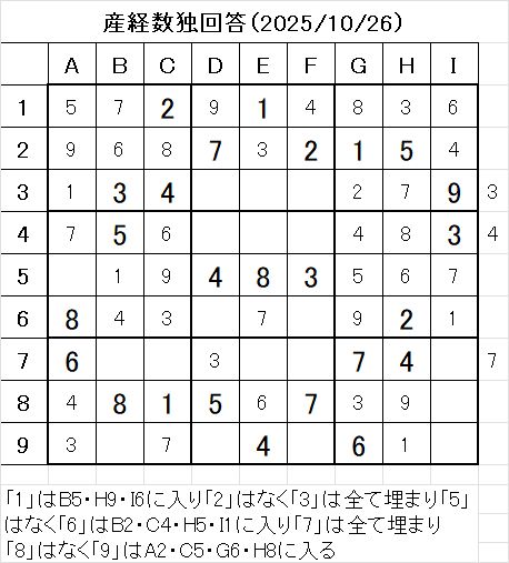 1.数字の「1」から順番に当てはめてみると下図の通りとなります。