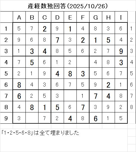 数字の「1」から順番に「9」まで当てはめていけば、ほぼ解けます。