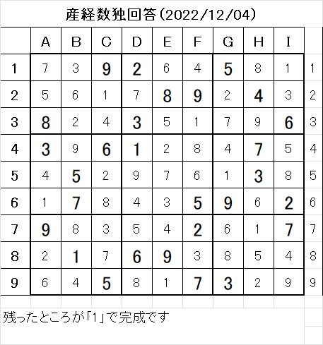 数字の「1」から順番に「9」まで当てはめていけば、ほぼ解けます。