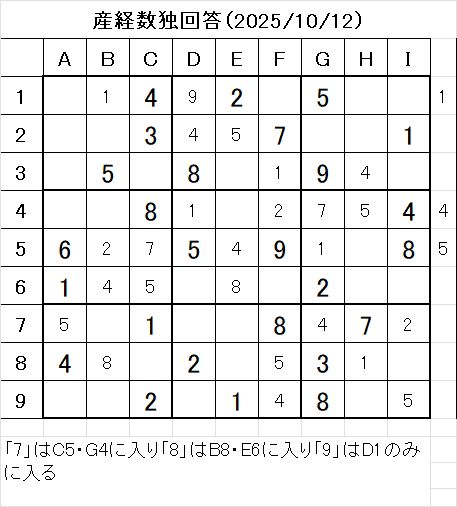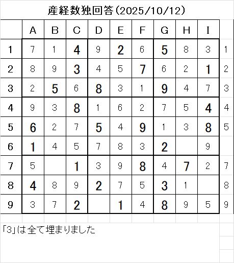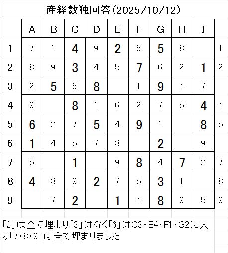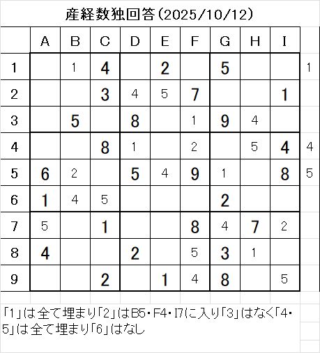 ⇒ 数独問題と回答(産経新聞2025年10月12日掲載分)