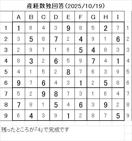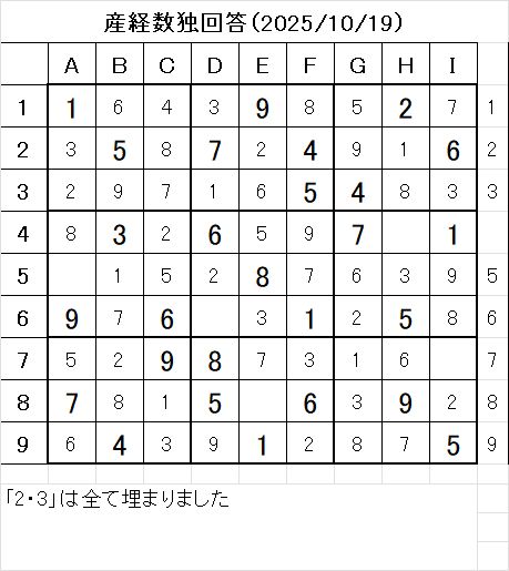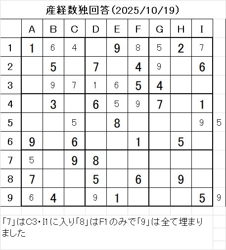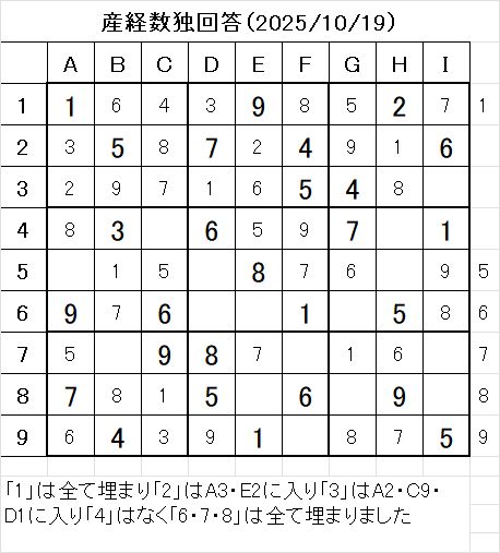 以上で、本日の数独を解くことが出来ました。