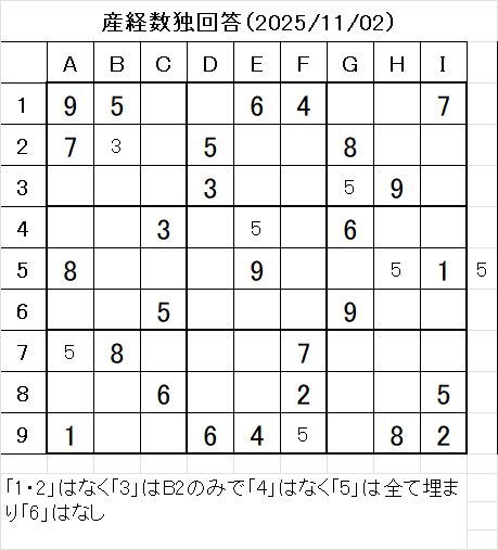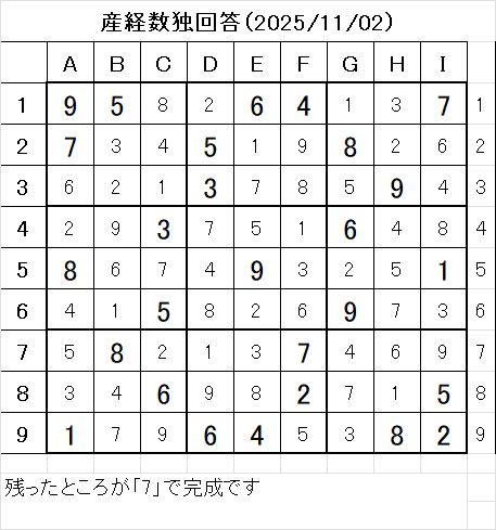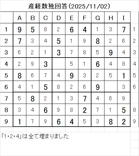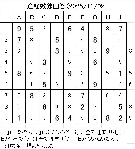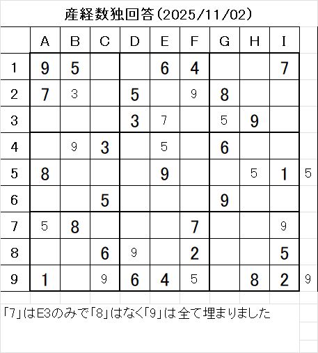 以上で、本日の数独を解くことが出来ました。