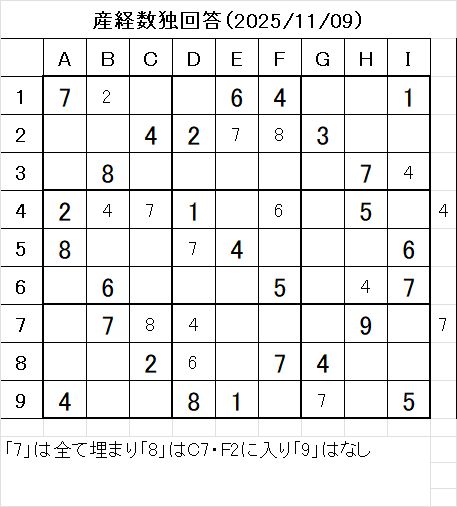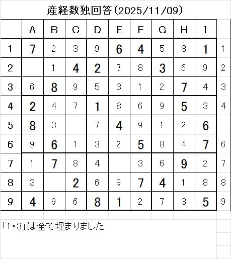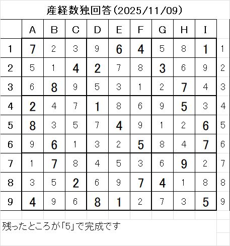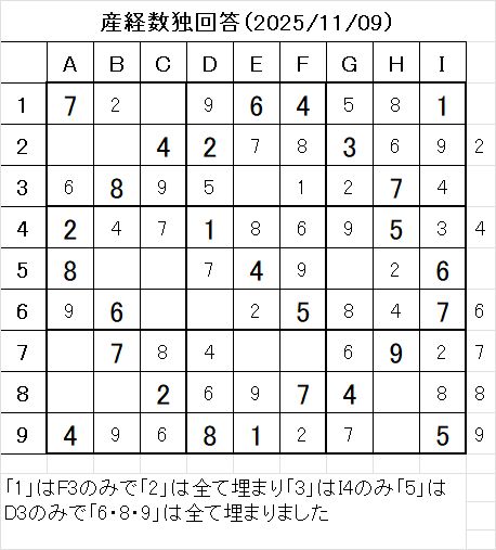 以上で、本日の数独を解くことが出来ました。