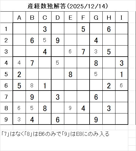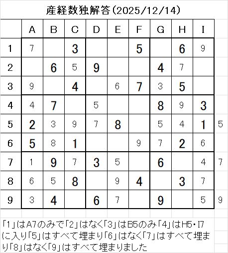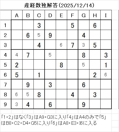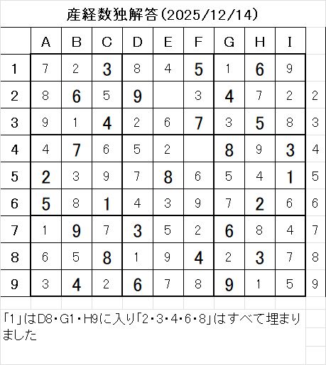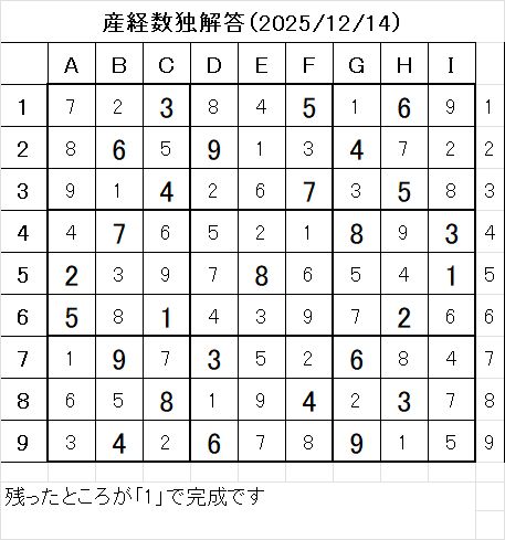🧮 今回の「問題+答え」はこちら → 産経新聞 数独 解答 2025/12/14