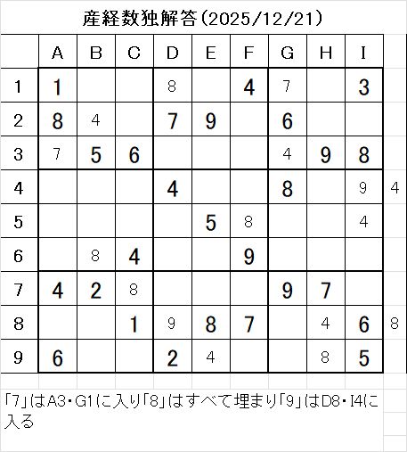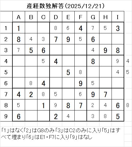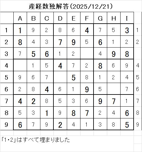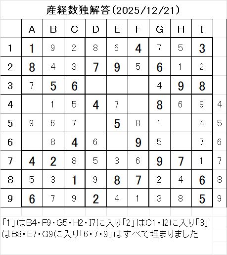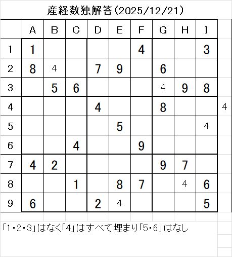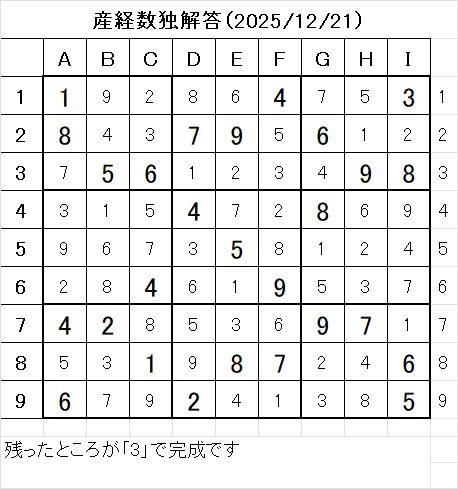 🧮 今回の「問題+答え」はこちら → 産経新聞 数独 解答 2025/12/21