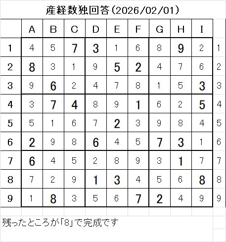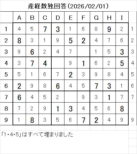 🧮 今回の「問題+答え」はこちら → 産経新聞 数独 解答 2025/2/1