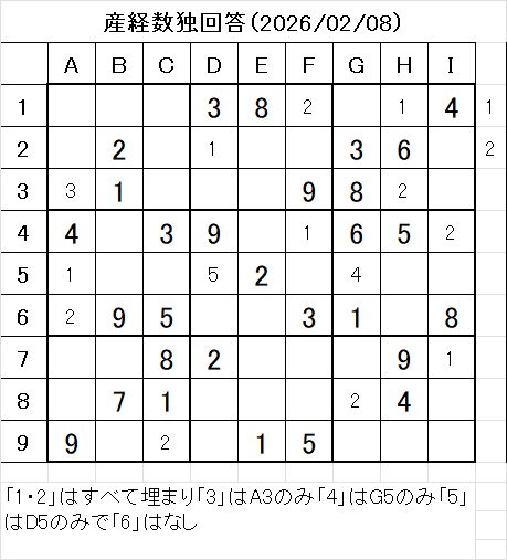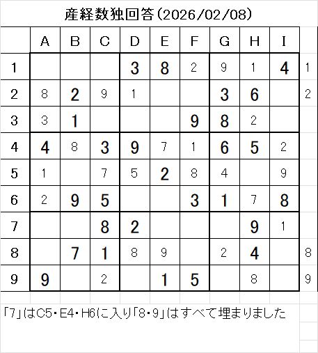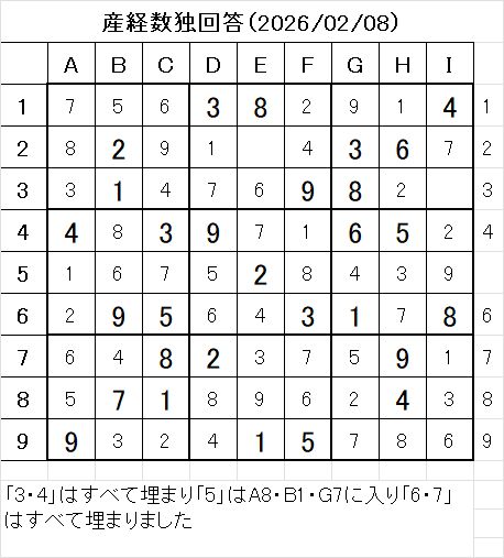 2026年2月8日掲載の産経新聞数独の問題です。