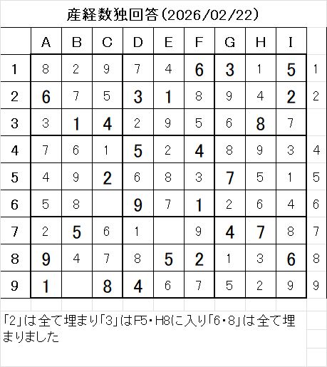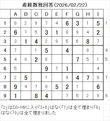 🧮 今回の「問題+答え」はこちら → 産経新聞 数独 解答 2025/2/22