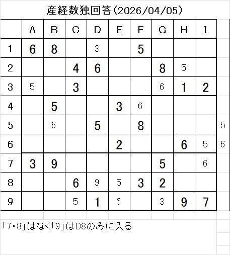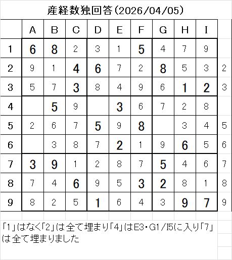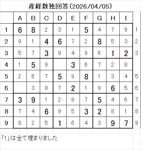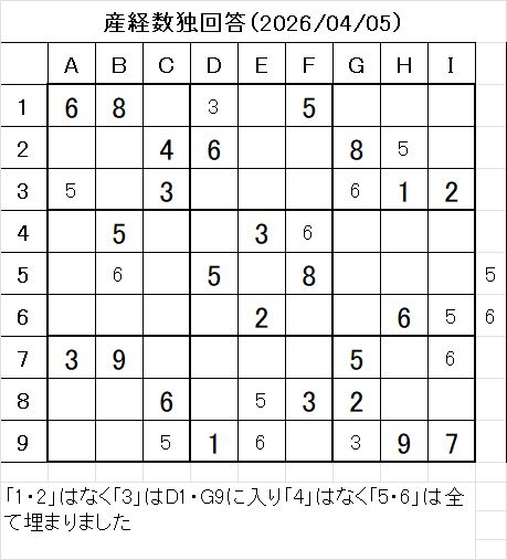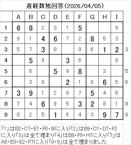 🧮 今回の「問題+答え」はこちら → 産経新聞 数独 解答 2026/4/5